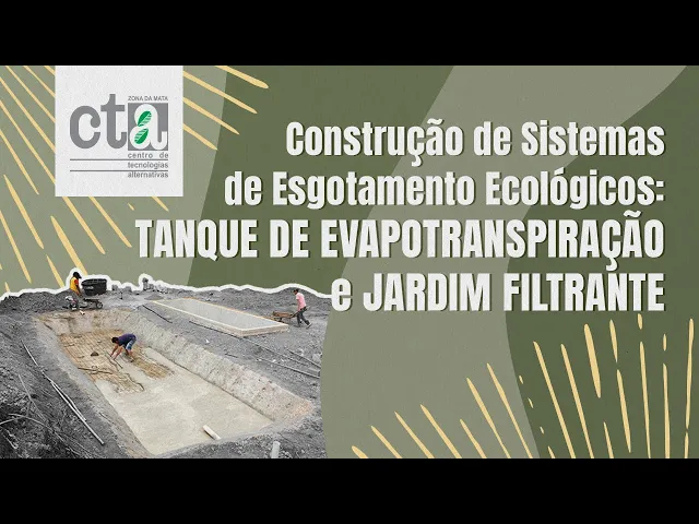 E aí [Música] E aí e nesse vídeo a gente vai acompanhar as etapas de construção de uma fossa evapotranspiradora e de um sistema largado construído também conhecido como Jardim filtrante e sistemas estão ligadas a cozinha Escola Comunitária do centro de tecnologias alternativas da Zona da Mata o CTA mas antes de começar o tutorial vale a pena explicar de uma força evapotranspiradora funciona fazendo tratamento do esgoto todos os materiais usados para compor as etapas da fossa servem para ajudar no processo de decomposição de matéria orgânica que tem no esgoto e essa matéria vira nutriente para as