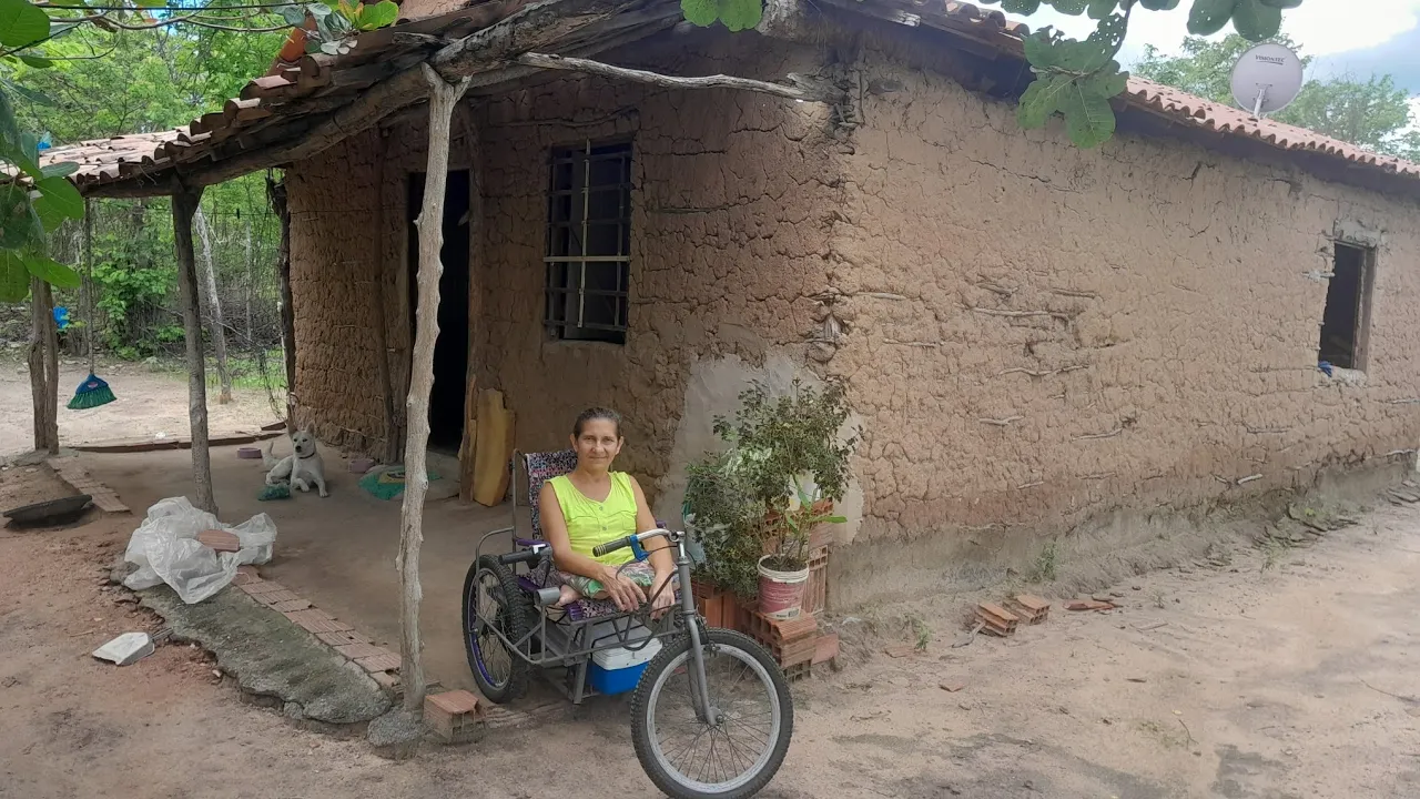 dá pr andar nela não ai Eita para sair para fora eu no banco tem um banquinho ali dentro quando não é Natal B é no banquinho e PR sair pra rua na minha cadeira de moto cadeira de moto né na minha cadeira de moto antigamente ela tinha uma é um triciclo de bicicleta né isso isso isso aí eu andava muito só que dependia de outra pessoa para poder te te conduzir né na nas subidas eu não conseguia né pedalar sim aí tinha com uma pessoa me ajudar agora não agora eu eu ligo e acelero e