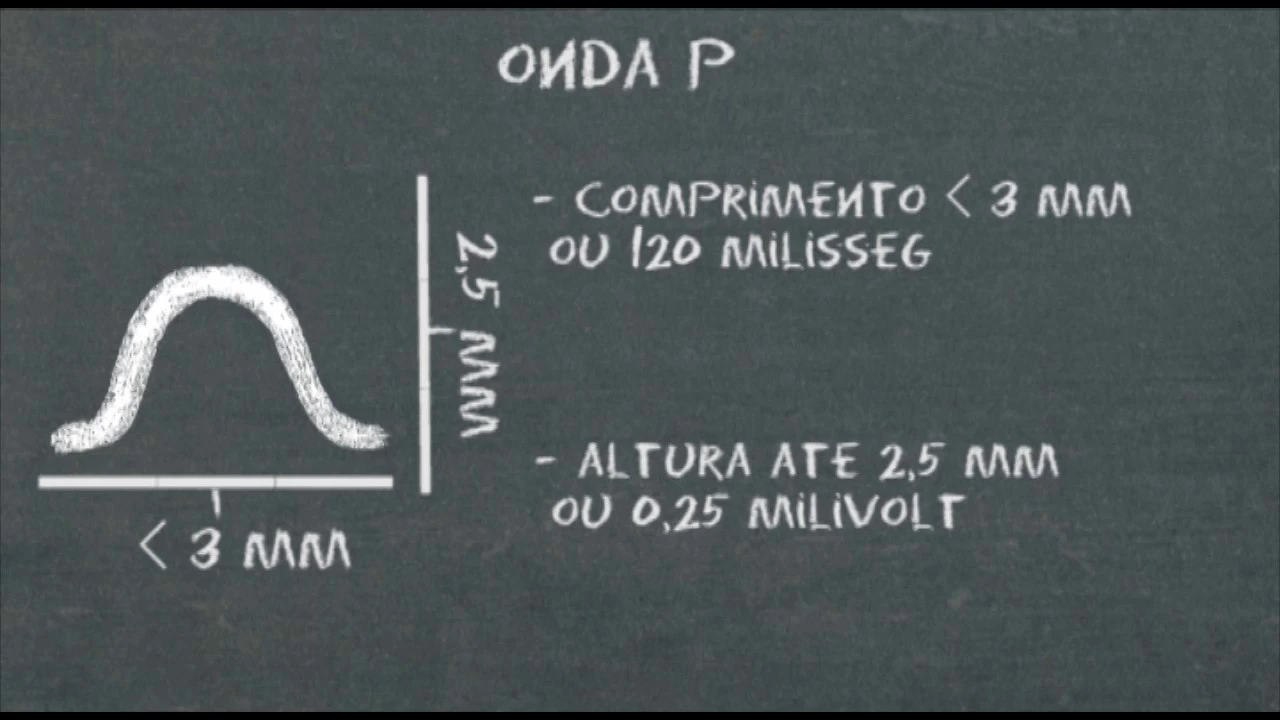 a 50 batimentos por minuto parece complicado mas com um pouco de prática fica fácil naquele mesmo exemplo podemos ver que o intervalo RR mede aproximadamente 4 quadrados ou 20 mm dessa forma a frequência cardíaca estará próxima de 75 batimentos por minuto lembre-se Este último método serve apenas para estimar rapidamente a frequência cardíaca agora vamos para a análise da onda p a onda P representa a despolarização atrial sendo a somatória da despolarização dos átrios direito e esquerdo a onda P normal tem menos do que 3 mm ou 120 MS de comprimento e até 2 5 mm