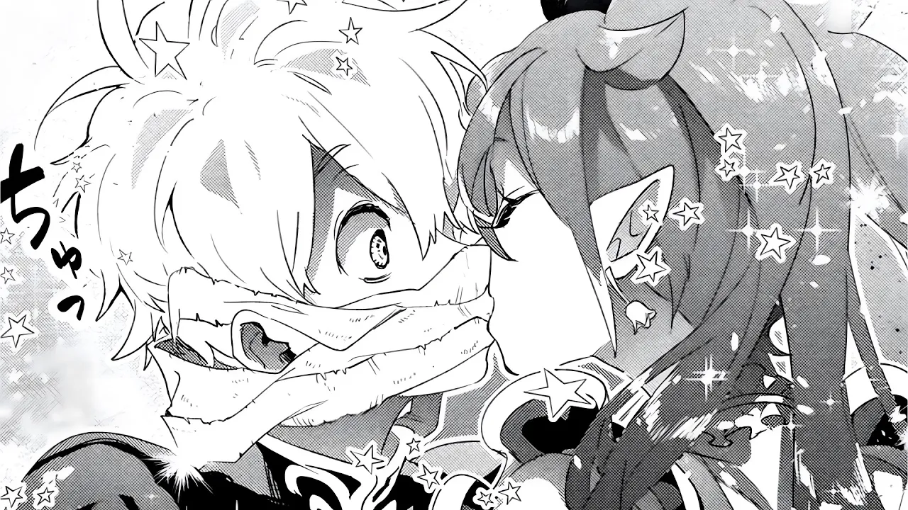it over his mouth leaning in she gives him a quick Kissed before pulling back with a teasing smile ashida stunned and red-faced stares at her speechless me grins teasing him about how long he plans to wear the bandage and declares she'll make him her number one fan waiting playfully she tells asii to look for her tomorrow in class ashida still dumbfounded asks if she's in his class she nods explain she saw him before he ran off and adds that juru is also in their class turning to juru ashida thanks him juru scofs saying he wasn't