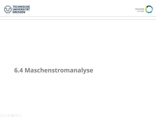 neben der knotenspannungsanalyse gibt es nach ein zweites wichtiges Verfahren zur Netzwerkanalyse das ist die maschenstromanalyse und mit dieser maschenstromanalyse beschäftigen wir uns im Kapitel 6.4 und Sie werden feststellen strukturell ähnelt die maschenstromanalyse der knotenspannungsanalyse sehr bloß dass wir jetzt hier keine knotengleichungen aufstellen sondern maschengleichungen und dass wir eben keine Knoten Spannungen betrachten als die Größen im Netzwerk die wir suchen sondern entsprechend maschenströme und was diese maschenströme sind das müssen wir zunächst einmal klären also maschenströme sind umlaufströme in unabhängigen Maschen das heißt in einem ersten Schritt brauche ich erst einmal ein System unabhängiger Maschen in meinem