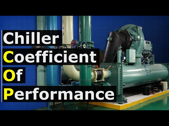 in this video we're going to be understanding chiller cop and how it's used to measure the efficiency of hlr and also learn how it's calculated chillers are extremely energy intensive to operate and that also means they are very expensive to run so it's important to understand how efficient they are operating one way to do that is by calculating the cop or coefficient of performance this will provide a measurement of the system's efficiency at different operating conditions a very low efficiency means you're getting very little output for your money and a very high efficiency means you're getting a lot of value for your money it's good practice to perform calculations on a chiller at different operating temperatures and loads and if the building uses multiple chillers this allows us to find which is the most efficient to run during certain times and conditions chiller efficiency is measured in cop this stands for coefficient of performance really the cop is just the ratio of how much refrigeration you get per unit of electricity you put in now the formula for this one is very simple the cop is just the division of the kilowatts of refrigeration divided by the kilowatts of electricity we're going to do the calculations on this example chiller and we're going to have a look at both the metric and the imperial units and the formulas and calculations for those now the first part that we need is the electricity in and that's measured in kilowatts this number is very easy to get hold of you can find this information on a digital energy meter and you will likely find this on the electrical panel alternatively it should be displayed on the user interface of the chiller or even on the building management system otherwise you will need to connect a temporary energy meter the electricity demand will vary depending on the cooling load this is not a fixed value now the second part that you will need to know is how much cooling you are getting out of the chiller evaporator ideally this will also be in kilowatts which makes it much easier but you can also use btus for the imperial calculation as we'll simply convert this for this value we should also be able to find this information from the chillers user interface or from the building management system alternatively if this is not available we would need to calculate this by taking some manual measurements for the volume flow rate of the chilled water and then we look up the water density and the specific heat capacity and then we measure the difference in temperature between the water entering and leaving the evaporator that is beyond this video but i'll just show you a sample calculation for how this is done coming back to the cop if we consider the metric units first we can see from our data gathering that this chiller is demanding 460 kilowatts of electricity and is providing 2 500 kilowatts of cooling so using the formula cop equals kilowatts of refrigeration divided by the kilowatts of electricity if we drop those numbers in we see we get a cop of 5. 4 when using the imperial units we see the chiller is demanding again 460 kilowatts of electricity and providing 8. 5 million btus per hour we need to convert that into kilowatts so we just divide that by the conversion factor of three four one two to get two thousand five hundred kilowatts then we drop those numbers in to get a cop of 5.