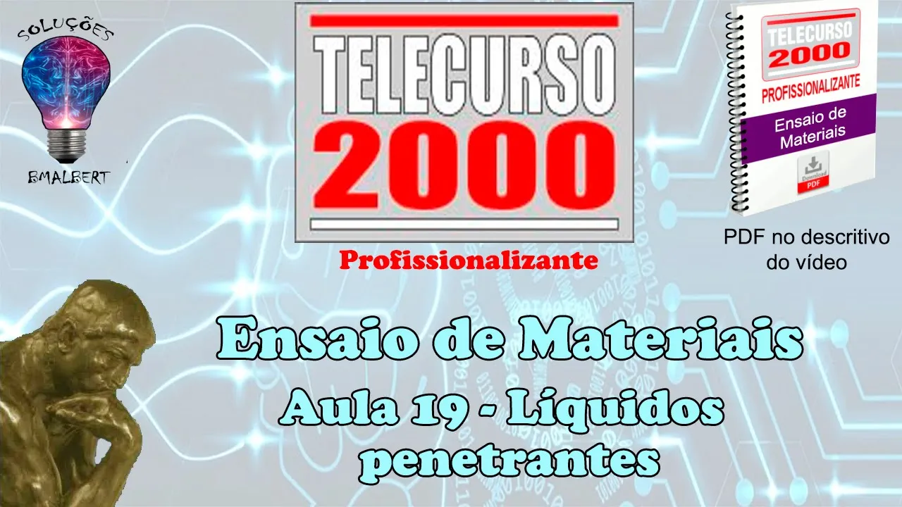 [Música] atenção vai começar agora uma Teleaula de ensaios de materiais do curso profissionalizante este módulo tem um total de 25 aulas hoje Você vai assistir a Teleaula número 19 Bons [Música] estudos você acha que esses ensaios visuais estão sendo feitos aqui servem para detectar todas as descontinuidades que essas peças de ao podem ter o que é que você acha C eu acho que algumas descontinuidades não dá pr enxergar assim a olho nu não também não sei n para você tá certo é claro que podem passar alidades que a gente não CONSEG energ ér enr outro