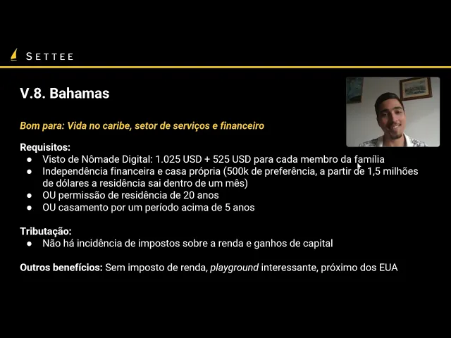 a gente tem bastante material sobreposta rica a gente também tem um artigo e tem um podcast gravado com o Igor Coelho sobre a experiência dele como nômade na Costa Rica e Bahamas a gente já chegou a abordar em alguns artigos sobre paredes fiscais mas ainda não tem um episódio não podcast Pelo menos durante a data dessa gravação Quem sabe no futuro a gente já tenha e se você conhece alguém que morou nas Bahamas pode falar mais sobre a gente também pode gravar beleza Esse foi o último país que a gente tratou hoje a partir da