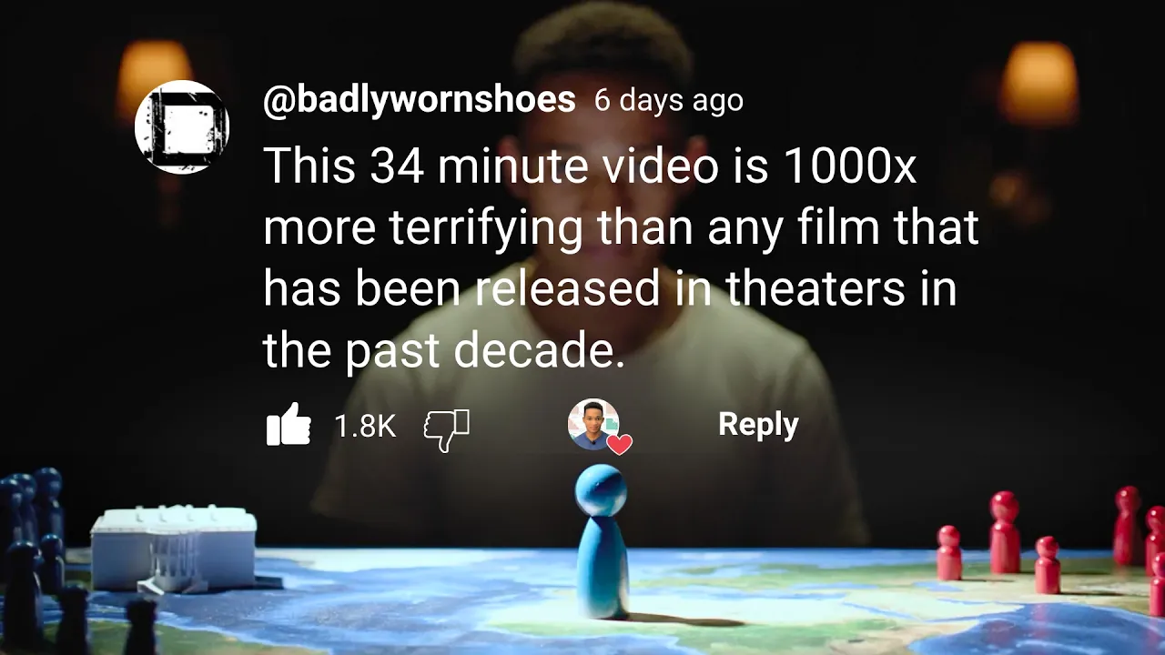 [Music] You're probably curious about that other ending at this point. The slowdown ending depicts humanity sort of muddling through and getting lucky. Only somewhat lucky, too.
