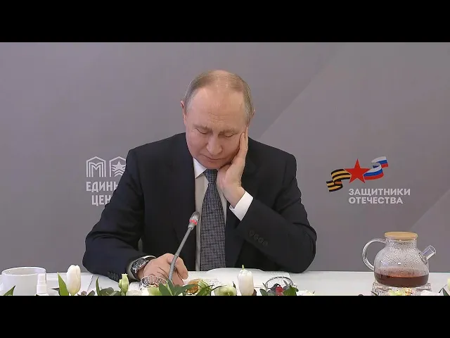 ошибки наших э э врагов противников как раз начинались именно с этого в недооценке э характера э русского человека Ну и вообще представителей общероссийской культуры Вот потому что я встречаюсь с людьми с разных национальностей так из России какая-то у нас всё-таки есть что-то Что объединяет всех нас людей живущих на этой Земле это Совершенно очевидно Вот ещё хотела Вас поблагодарить Владимир Владимирович я мне есть с чем сравнить Когда погиб мой сын защитников Отечества не было и сейчас когда есть этот фонд просто есть сравнить с чем я вас благодарю сердечно за вашу идею создать защитники тече об благодарность
