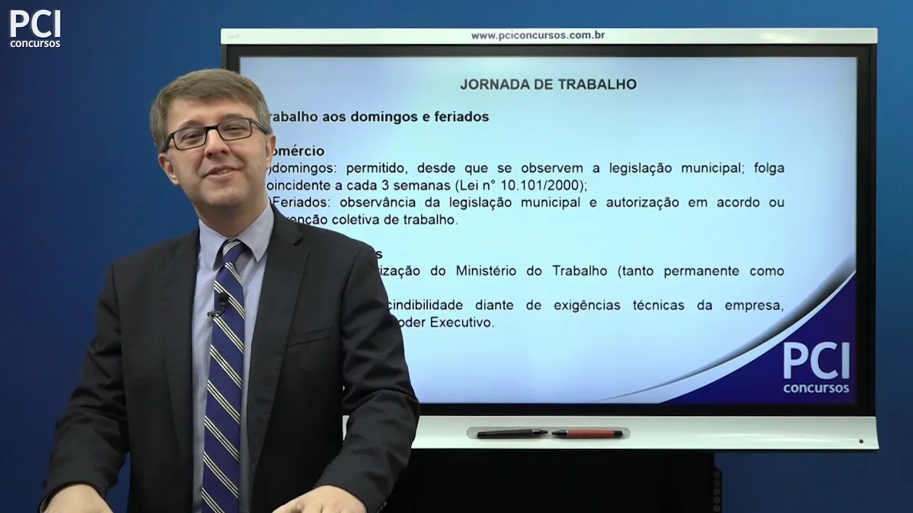 e aí o olá pci concursos tudo bem com vocês curso direito trabalho nosso curso direito trabalho jornada de trabalho a nossa temática nós continuamos terminamos aula passada e introduzindo a o tema sobre o dsr descanso semanal remunerado e o trabalho nos feriados ok eu já vou me encaminhar para a tela e já vamos discutir as questões que envolvem esta temática com mais detalhamento então nós na aula passada afirmamos que o descanso semanal remunerado se dá dentro do prazo de 7 dias e tem que recair preferencialmente aos domingos é o que diz a constituição da república