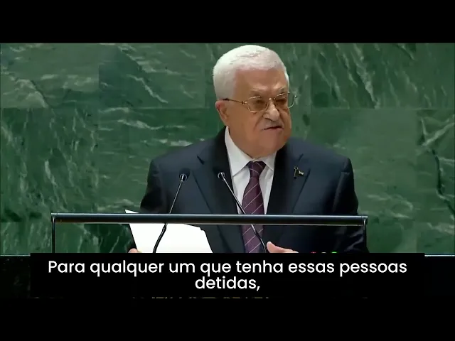000 crianças das 40. 000 igual número de mulheres e idosos de nosso povo e quem é então que continua a matá-los pesso que me responda por Deus Pare com esse crime pare com isso agora pare de matar crianas e mulheres pare o genocídio pare de enviar armas para Israel essa loucura não pode continuar o mundo todo é responsável pelo que está acontecendo com nosso povo em Gaza e na Sis Jordânia Assis Jordânia que está sob um cotidiano e contínuo a agressão israelense está sob uma atividade de assentamento viciosa eles estão construindo em todos os lugares da Palestina como se toda a Palestina fosse deles está sofrendo com o terrorismo de grupos de colonos apoiados pelo governo israelense e pelo exército de ocupação que estão destruindo centenas de casas nas terras da Palestina sem mencionar o que está acontecendo com nossa capital eterna a kuds está sujeita a campanhas para mudar sua natureza e judais al-a além de agressões aos seus locais sagrados e Marcos históricos para alterar seu status legal e histórico recentemente ouvimos um ministro israelense terrorista pedindo a a construção de um templo na Mesquita de aaxa devemos condenar e deter este Ministro imprudente todos aqueles que desejam incitar um conflito religioso e gerar conflitos que destruirão tudo h a sua maneira a Mesquita de aaxa e seus arredores senhoras e senhores são Propriedade Exclusiva dos muçulmanos Isso Foi confirmado por uma resolução da liga das nações em 1930 essa foi uma resolução da Liga das Nações e não vamos aceitar Nada Além disso não importa as circunstâncias senhoras e senhores já alertamos diversas vezes aqui na assembleia geral que a situação na terra ocupada pelo Estado da Palestina indicava uma explosão iminente e essa explosão ocorreu aconteceu em 7 de outubro do ano passado e depois e desde o primeiro dia enfatizei a necessidade de parar imediatamente a guerra eu condeno o assassinato de civis não importa quem sejam de que lado estejam ou de onde vem exigir a libertação dos prisioneiros e dos detidos por ambos os lados não há necessidade de deter mulheres crianças e idosos já dissemos isso repetidamente para qualquer um que tenha essas pessoas detidas eu pedi que fosse imediatamente para a mesa de negociações para implementar uma solução de dois estados baseada em resoluções internacionais Mas em vez de ouvir a voz da razão o governo israelense aproveitou o que aconteceu para lançar uma guerra total de genocídio contra Gaza cometeu e continua cometendo crimes de guerra como reconhecido pela Comunidade Internacional eles são chamados de crimes de guerra Israel hoje está lançando uma nova agressão contra o povo irmão Libanês o povo Libanês está agora a ser submetido a uma guerra de genocídio Israel tende por fim a guerra em lbano e na Palestina condenamos esta agressão e exigimos que cesse imediatamente Israel reup a faixa de Gaz em sua totalidade e a destruiu quase inteiramente de modo que Gaza não está mais apta para a vida a maioria das casas foi destruída a mesma situação se aplica à maioria dos prédios instalações de saúde escolas prédios comerciais estradas igrejas mesquitas estações de tratamento de água usinas elétricas e estações de saneamento qualquer pessoa que vá Gaza e a tenha conhecido antes não a reconheceria mais não está mais lá 75 de tudo em Gaza foi totalmente destruído se Israel acha que vai escapar de ser responsabilizado e punido por esses crimes está enganado a Comunidade Internacional deve impor imediatamente sanções a Israel os massacres os crimes o genocídio que Israel vem petando contra nosso povo desde sua Criação em 1948 até hoje não ficarão impunes não há estatuto de limitações os direitos Nunca Serão perdidos Enquanto houver aqueles que os exigem e apesar de nossos repetidos apelos e demandas o mundo não conseguiu obrigar Israel esse estado transitório a parar esta guerra de genocídio e seus crimes de guerra contra residentes civis inocentes lamentamos que os Estados Unidos a administração dos Estados Unidos a maior democracia do mundo bloqueou três vezes projetos de resolução do Conselho de Segurança exigindo que Israel respeitasse um cessar fogo os Estados Unidos Alone se levantou e disse não a luta vai continuar ele fez isso usando o veto E além disso ainda deu a Israel as armas letais que foram usadas para matar milhares de civis inocentes incluindo crianças e mulheres e isso encorajou ainda mais Israel a continuar sua agressão enquanto os Estados Unidos estáo então por que não continuar já que já é um estado agressivo Este é os Estados Unidos o mesmo país que foi o único membro do Conselho de Segurança que votou contra conceder ao estado da Palestina adesão plena a ONU não merecemos ser membros aos olhos da América então eles usam o veto Contra isso eu não entendo como os Estados Unidos podem continuar a se opor ao nosso povo e privar-nos dos nossos direitos legítimos à liberdade e Independência quando 194 outros países tê esses mesmos direitos e nós não somos inferiores a eles Israel que se recusa a implementar a resoluções das Nações não merece ser membro desta organização internacional Israel cujo representante permanente nesta organização afirma que a própria construção do Nações Unidas E ele disse isso ele disse que este prédio deve ser removido este prédio em que estamos agora deve ser demolido este país não merece ser membro desta organização desde o início não cumpriu as condições para a Adesão pois em 1949 quando apresentou seu pedido de adesão à ONU a organização afirmou que o país não merecia ser membro impôs duas condições primeiro aceitar e implementar a resolução 181 e a resolução 194 sem cumprir essas duas condições você não poderá se tornar membro das Nações Unidas mos sharet o Ministro das relações exteriores na época escreveu uma promessa você vai ver um comprom