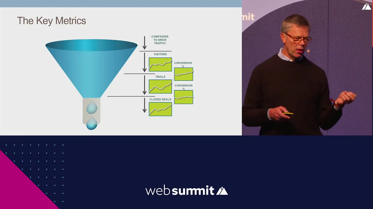 it really important that we understand which metrics to actually highlight and try to simplify those down to the smallest number possible and that's what my goal today is to help you understand which are the important metrics and there is one warning I will give you which is the metrics change depending on what stage you're at and I don't have time today to explain that detail but I will be in my following presentation at 12 o'clock on the startup University talking a lot about these stages and what you might think how things change them but let's