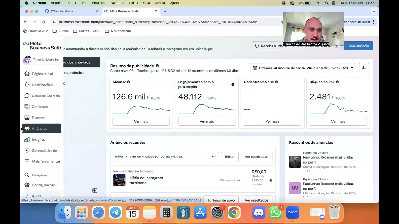eu posso melhorar isso como que eu posso deixar meu perfil mais atrativo Como que eu posso deixar ele melhor os impulsionamentos que eu tô fazendo estão e diminuindo os meus resultados não estão aumentando Então eu preciso melhorar os meus impulsionamentos escolher publicações novas públicos novos para cada vez melhorar isso tá bom E aí você também pode analisar os impulsionamentos individualmente que você fez se você clicar aqui em anúncios você vai ver todos os anúncios que você fez você pode clicar em ver todos os anúncios e você vai conseguir de maneira rápida analisar ver se o