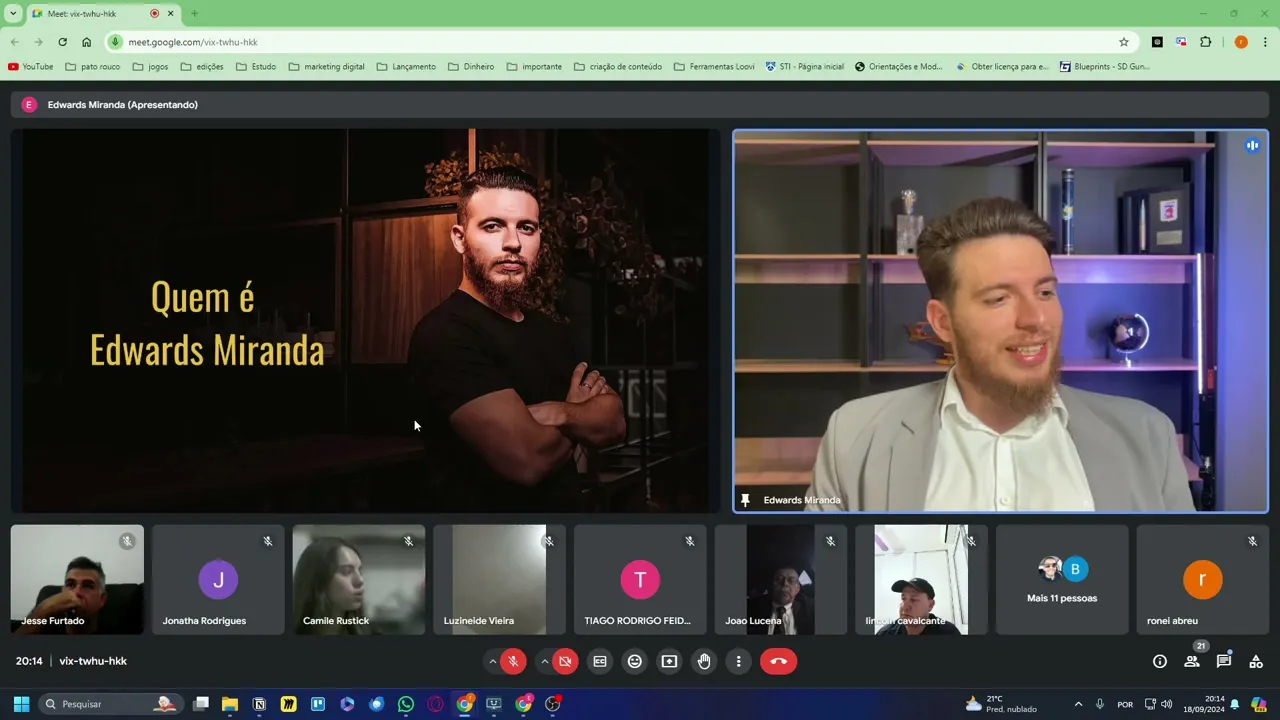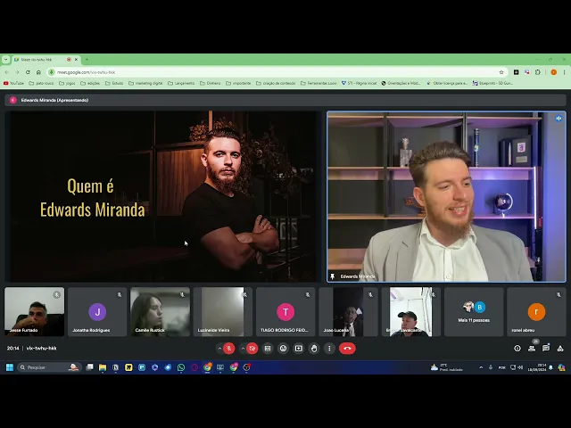 e é para isso que a gente veio aqui cara quem sou eu tenho um monte de gente Apesar desse tipo de de evento eu priorizei principalmente a minha então a gente conseguiu ali uma confirmação de Umas eu acho que 70 80 pessoas era só para pessoas interessados na minha própria base não seguidores novos aqui online agora a gente tem quase 20 normal sempre vem menos pessoas a A ideia é que eu imagino que vocês me conhecam mas eu fiz um pequeno um pequeno adendo aqui uma introdução para que vocês me conheçam e não achem que