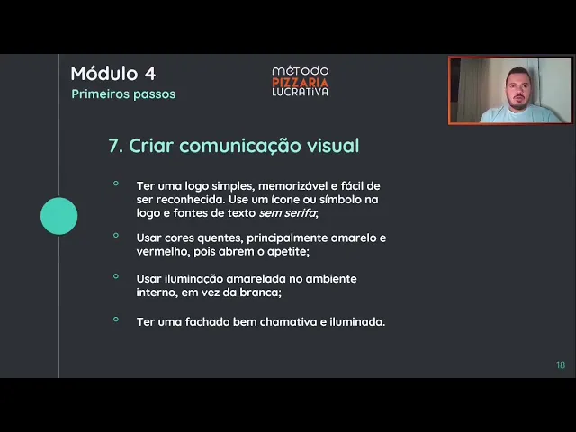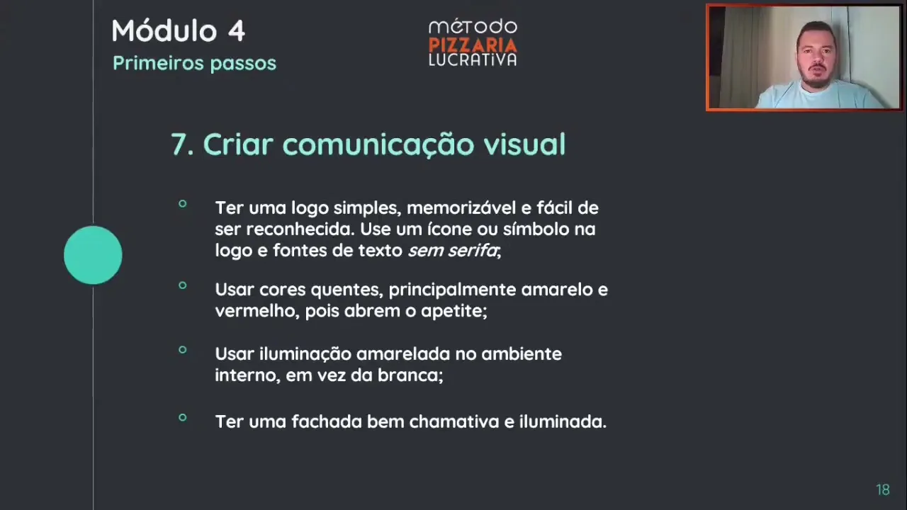 a a transmitir vontade de você comer o seu cérebro ativa alguma coisa no cérebro que dá vontade de você já eh com alguma coisa então por isso que é importante você seguir esses passo outra coisa uma pizzaria eu aconselho que você sempre use uma uma luz mais fechada uma luz mais amarelada na sua loja esse essa essa luz ela tende a abrir também mais o apetite se for uma loja se for uma loja tanto que vai receber balcão clientes no balcão como salão o cliente numa loja assim com essa iluminação ela se torna mais aconchegante