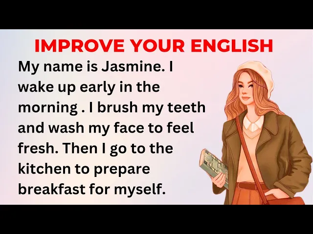 welcome to my channel learn English with Jasmine hi friends today's topic is daily routine listen carefully to the daily routine then repeat each sentence with me for your practice I will be asking you some questions based on the paragraph my name is Jasmine I am 20 years old I have a daily routine that I follow every morning I wake up early and get out of the bed then I brush my teeth and wash my face to feel fresh after that I go to the kitchen and prepare breakfast for myself I like to have cereal with
