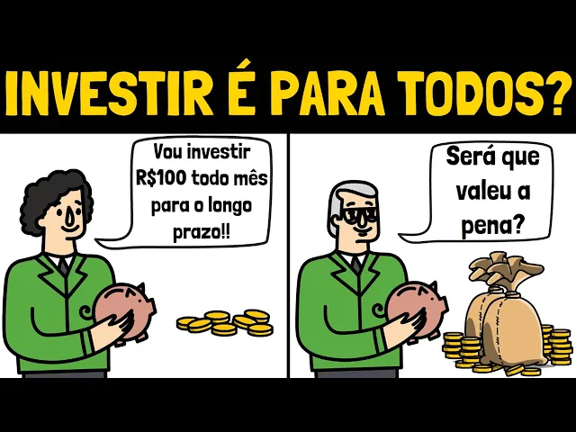 000 tendo investido apenas R 36. 000 o resto foi apenas de rendimento sobre rendimento Lembrando que isso é descontando a inflação Beleza o valor nominal seria bem maior que esse mas já tô descontando a nível inflação do período e você pode até pensar que é muito mas imagina se privar de muita coisa economizando em tudo que é possível para não gastar todo o salário no mês para conseguir investir seus R 100 e no final de 30 anos de 360 meses ter apenas o equivalente a r 97. 000 e é claro é muito melhor do que não investir nada e tá endividado ou Zerado porém existem alternativas muito melhores que essa é claro que com o passar do tempo o salário mínimo vai sendo reajustado e fica fica cada vez mais possível aumentar a quantia investida mas esse exemplo de investir R 100 por mês todos os meses durante 30 anos ainda é um cenário super otimista pois alguém que ganha um salário mínimo na prática vai ser muito difícil se manter no plano de investir todos os meses e sem retirar dinheiro do investimento justamente por estar nessa zona de vulnerabilidade que qualquer gasto a mais já significa entrar em dívidas ou ter que retirar dinheiro da reserva ou até mesmo de investimentos por exemplo não conseguindo ter a mesma Constância de investir todo mês quando comparado com alguém que ganha 5.