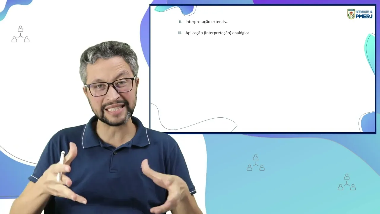 posso interpretá-la no sentido técnico Mas em vez de eu interpretar lá no sentido técnico eu interpreto ela no sentido mais genérico para abranger outras situações e não estaria incluídas se eu só utilizasse o sentido técnico é o caso da palavra cônjuge se utilizar seu interpretar ela no sentido técnico Eu afasto companheiro você é um interpretar ela no sentido mais genérico eu incluo companheiro e essa interpretação mais genérica para incluir outras situações é o que a gente chama de interpretação extensiva ela cabe também e por fim a aplicação analógica a gente aprende isso aqui principalmente lá