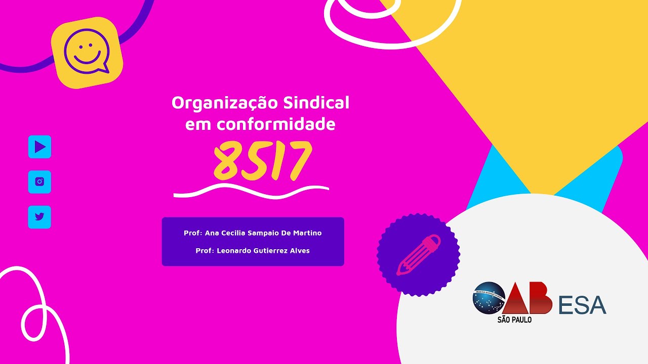 compliance desse sindicato para que esse sindicato comprar as regras esteja de acordo com as leis Mas também você pode fazer parte da empresa do comprar esse Sindical de uma empresa para identificar se a sua empresa está Adequado aos aspectos do direito coletivo do trabalho ou mas eu trabalho para reclamante professor mas se você entende dos mecanismos de compliance Mesmo trabalhando por reclamante você pode entender problemas no sindicato patronal ou problemas dentro da instituição então muitas vezes a situação ela pode se Basear em aspectos que não foram identificados pela instituição e ela deveria ter se identifica