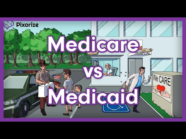 [Applause] Medicare and Medicaid are two different health care programs that were both established by the Social Security amendments of 1965 they are operated by different parts of government and they are designed to serve different groups of people in this video I'll give you my visual mnemonic so you can easily remember the differences come test day let's take a look at the side in front of this hospital here yep we're at a center of care which is obvious by taking a look at that sign that reads we care seems like I've seen signs like this a