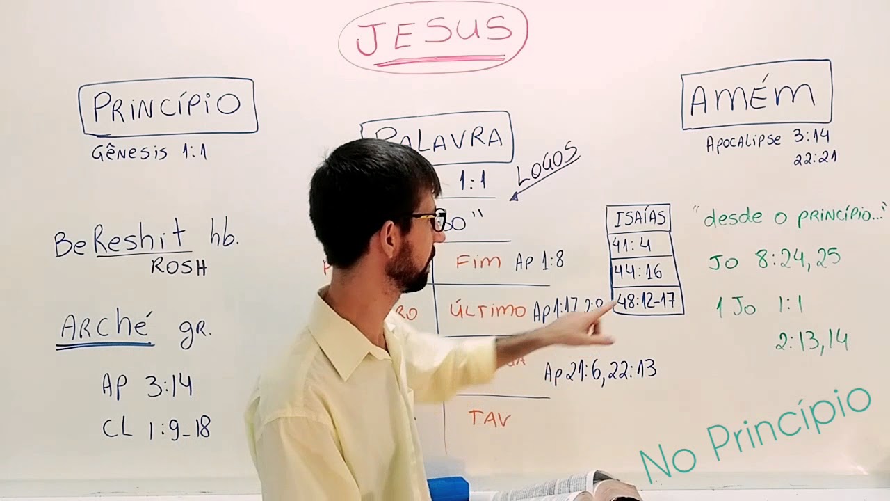 ] Verse 17: “And he is before all things, and by him all things are held together; And he is the head of the body, the church: who is the beginning, the firstborn from the dead; that in all things he might have the preeminence”. That is, when it is said that he is the "beginning", the "firstborn", or that he has the "preeminence", which is the "head", all of this is related to the first word of the Bible: “Bereshit”; "Reshit" means "head", "founder", "beginning", "firstfruits". All of the Scriptures speak of Jesus, so we could not begin the Bible course without addressing Jesus more deeply.