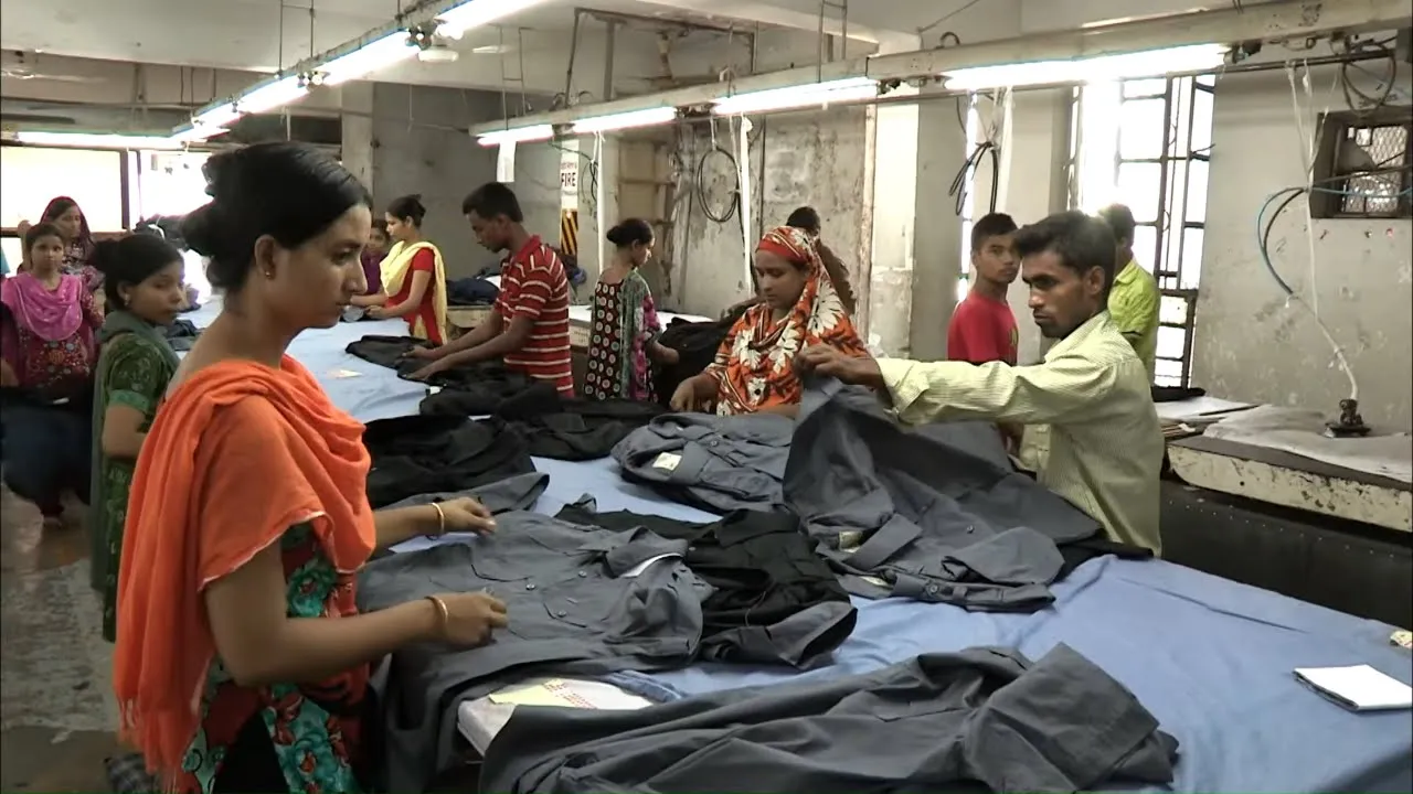 ans cela fait deux ans qu'elle travaille dans l' usine à 8 heures par jour à l'assemblée la manche droite au dos du tee shirt un travail répétitif le but vient maîtriser le geste pour obtenir une bonne cadence je dois l'être très efficace le but c'est de coudre 100 pièces comme celle-là par heure mon salaire ne dépend pas du nombre de pièces que je fabrique mais si je peux en faire sens c'est bien tout le monde est content la jeune femme peut faire jusqu'à 2 heures supplémentaires par jour ce qui lui rapporte 50 centimes de plus