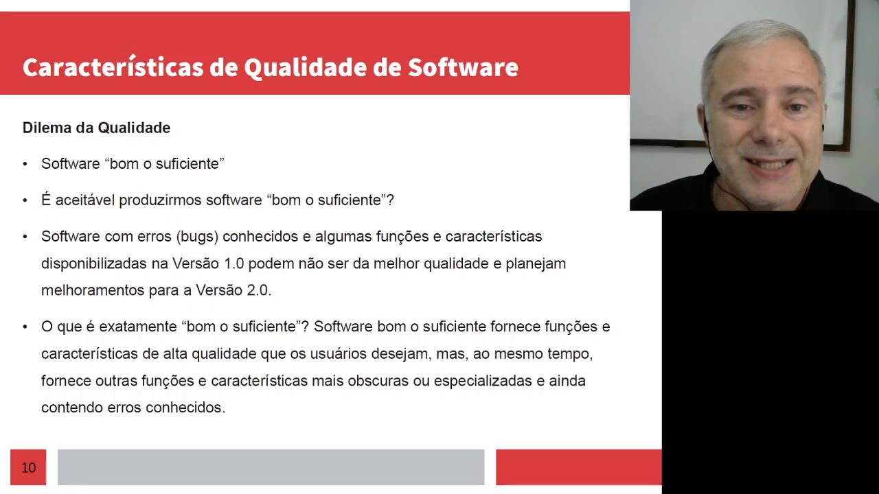 saber o que a gente entende no nosso na nossa empresa com a qualidade de sobra Ah tá é diferente de empresa para empresa dependendo da características que o software produzido por essa empresa é deve ter tá então desde um software para foguetes espaciais até um software para folha de pagamento é tudo isso vai ser vai demandar características diferentes de qualidade da e o conceito qualidade de software para essas empresas pode ser diferente então o que a gente precisa fazer saber o que que é a qualidade sofre para gente a criar um conjunto de atividades para
