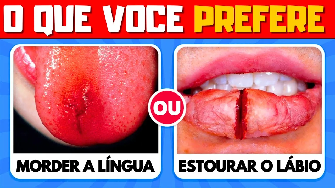 prefere quebrar o nariz ou ficar sem o dente da frente ou escutar Anita ou escutar bonjovi usar a escova de alguém ou Alguém usar a sua fique agora com 35 perguntas bem difíceis de se responder e aí o que você prefere prefere ter internet lenta sempre ou usar internet boa só uma hora por dia [Música] prefere salvar o gatinho ou ser a primeira pessoa a jogar GTA 6 prefere comentar seu maior medo ou curtir este vídeo [Música] prefere ter cabelos brancos ou ter o corpo [Música] peludo prefere fazer xixi nas calças ou fazer cocô nas
