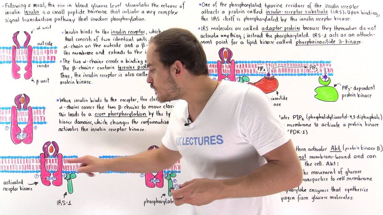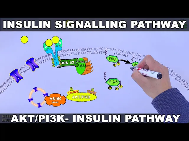 in the previous video we discussed about the diabetes mellitus and its types if you want to watch that video first the link is in the description now in this video we'll be discussing about the insulin signaling pathway this pathway regulates blood glucose levels and we know insulin decreases blood glucose levels and it must be noted here it is the glucagon which is the antagonist of insulin and if we see what this pathway does the insulin pathway basically mediates the uptake of glucose molecules from blood where glute4 channels the signaling molecule in this pathway is insulin