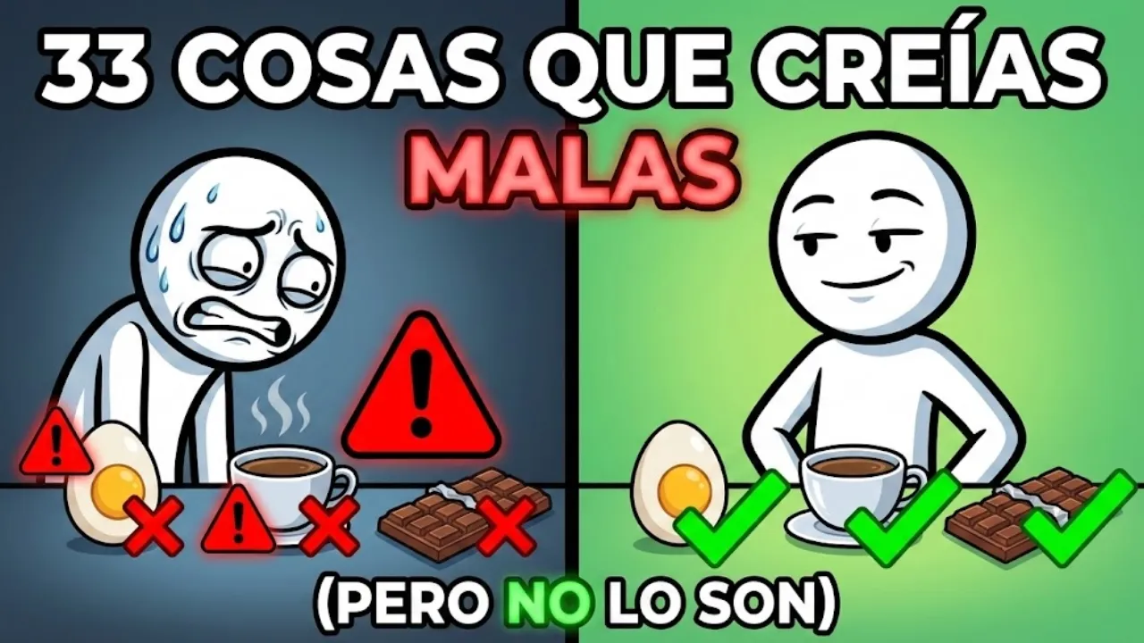 has evitado comportamientos, has vivido con miedo, todo basado en información desactualizada o directamente falsa. Y mientras tanto, te has perdido de alimentos y hábitos que en realidad son beneficiosos, que podrían mejorar tu salud, que podrían hacerte sentir mejor, pero los has evitado porque alguien te dijo que eran malos. Hoy te voy a mostrar 33 cosas que probablemente crees que son malas para tu salud, pero que la ciencia moderna confirma que no lo son.