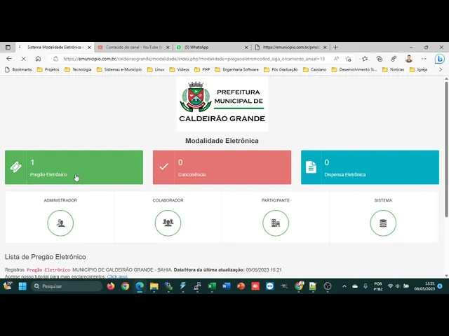 editais ou licitações que estão em aberto no caso nesse caso como foi clicado aqui emprega o eletrônico vai aparecer todos os registros de pregos eletrônicos aqui embaixo se for concorrência ele clica também vai aparecer na mesma forma assim como dispensas eletrônicas como o uso aqui no sistema é para o pregão eletrônico nesse caso aqui nesse exemplo então ele vai ter que fazer o seguinte ele vai buscar aqui né pesquisar no caso qual se encaixa no caso aquilo que ele quer participar de acordo com a empresa vai digitar aqui vai localizar Então as licitações que ele
