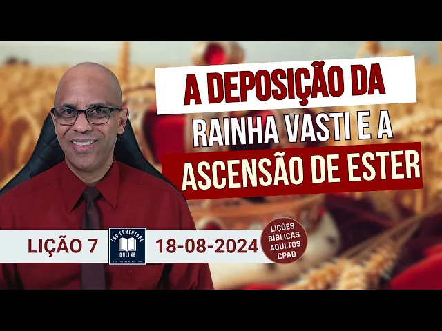 EBD comentado online Bom vamos lá tópico três esté a judia se torna rainha em terra estranha todo o relato até aqui sobre a suera vast é para entendermos a oportunidade que surgiu desse conflito entre eles permitindo que esté se tornasse rainha nós vamos ver que esse tópico Ele é bem menor e não se explorou tanto falar sobre Detalhes e lições que podemos aprender com esse momento dela se tornando rainha mas se explorou muito a questão da desobediência de vast para contrastar com a obediência de esté então aqui nesse nesse nesse tópico tá se focando muuito