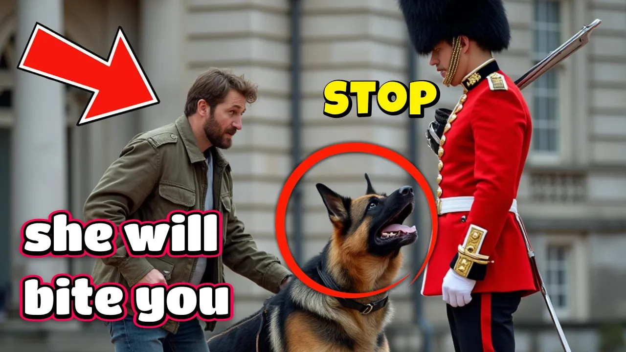 the tourist set his German Shepherd on the Royal Guardsman believing he could get away with anything but one whistle changed everything the dog froze and the Arrogant Man became the laughing stock of the crowd a bright morning in London sunlight shimmered through thin clouds reflecting off the Golden Gates of Buckingham Palace and the polished buttons of the royal guard's uniforms around the palace the usual tourist Hub up filled the air the click of cameras the murmur of conversations and the calls of tour guides William hunt stood firmly at his post tall and well-built he embodied