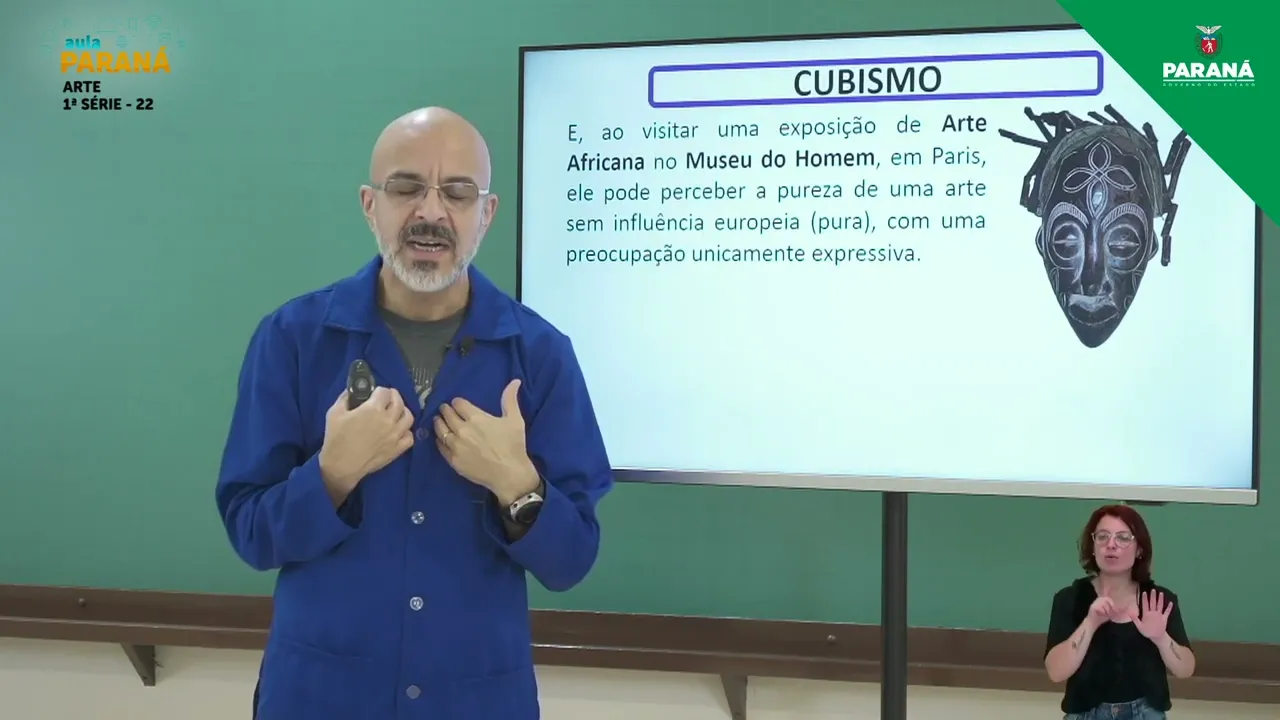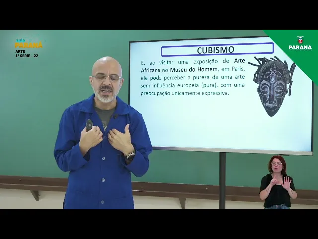 começou ver aquele testre ele começou a ver que late muito primitiva ele começou a trazer algo na cabeça dele que ele começou a passar isso misturar todos aqui quiser uma coisa nova aí tá conversando surgir aquilo que já conhecer como o mesmo então visitar uma exposição de arte africana no museu do homem Paris ele pode perceber a pureza de uma artista influência europeia pura como a preocupação unicamente expressiva o que acontece na cabeça do artista africano não existisse a questão dos bolso ele pega um pedaço de madeira ele esculpe a madeira na primeira mão ele