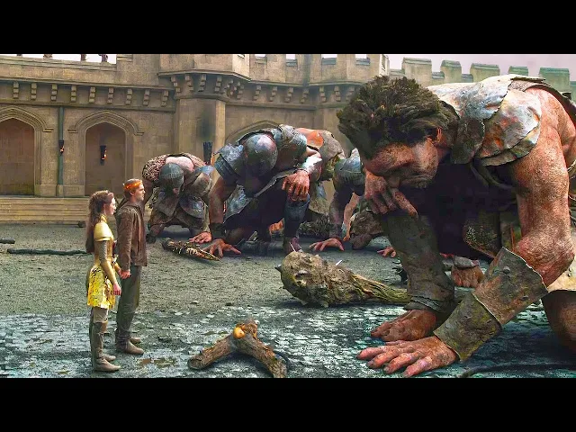 momentos depois os Gigantes chegam Jack Diz ao monge para suar o alarme e ao se aproximar do rei e de Isabele para contar sobre os Gigantes eles os veem logo atrás dele todos correm de volta para a cidade com os Gigantes se aproximando e matando os soldados do rei o general falon vai atrás do Rei mas eles são [ __ ] pelo primeiro pé de feijão elmon organiza o exército na cidade os Gigantes estão bem atrás de Jack enquanto elmon espera que eles entrem na cidade para incendiar o óleo o rei entra na cidade E