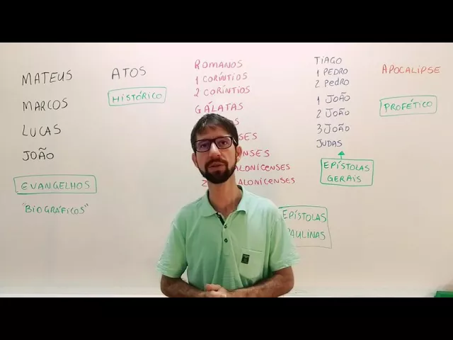 Now we will start our second lesson, which is about the New Testament The New Testament is divided slightly differently from the Old Testament, however, they also have some similarities for example, you will see here Historical book you will also see Prophetic book What also happens there in the Old Testament, right? ! Well, the most important division that we have in the New Testament is Matthew, Mark, Luke and John those are what we know as the Gospel also called Biographical books Why biographical?