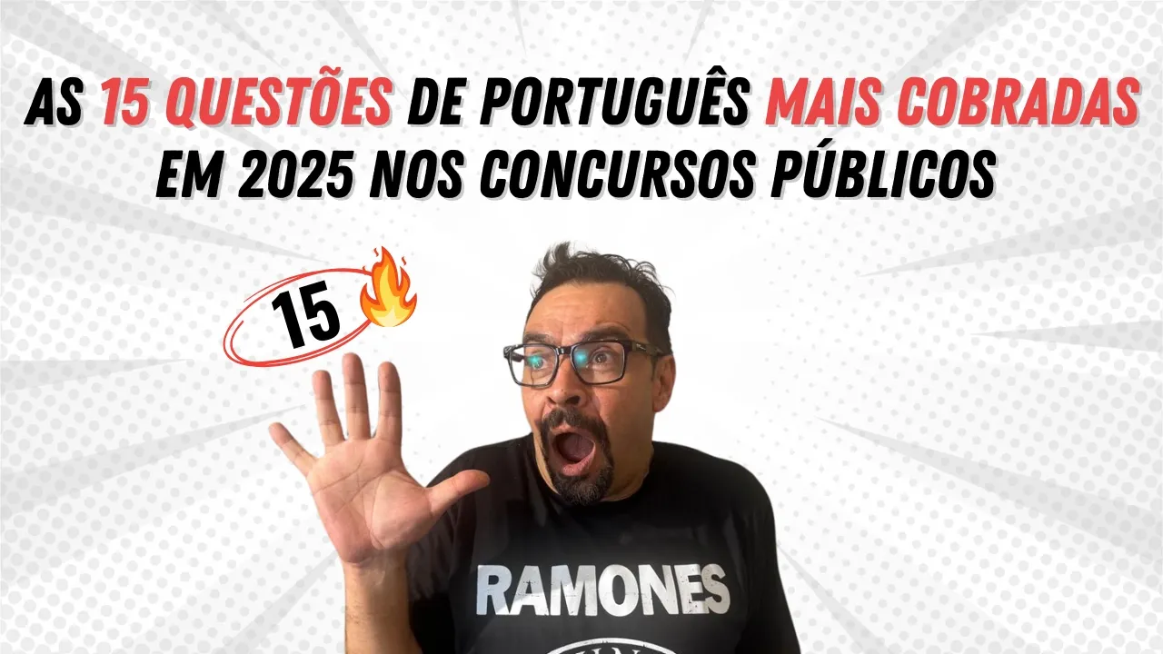 Neste vídeo você vai ver as 15 questões dos cinco assuntos mais cobrados em língua portuguesa para concurso público em 2025. E olha, vou falar uma coisa para você, hein? Não precisa saber que banca é. Por que, Avar? Eu peguei umas 300 provas deste ano. Todas, em todas elas, não importa a banca, em todas elas caíram esses cinco assuntos. Você vai ficar bom em língua portuguesa. Vamos lá, galera. O negócio é o seguinte. O meu nome é Álvaro Ferreira. Eu dou aula de português há mais de 30 anos e neste canal eu ajudo você a gabaritar