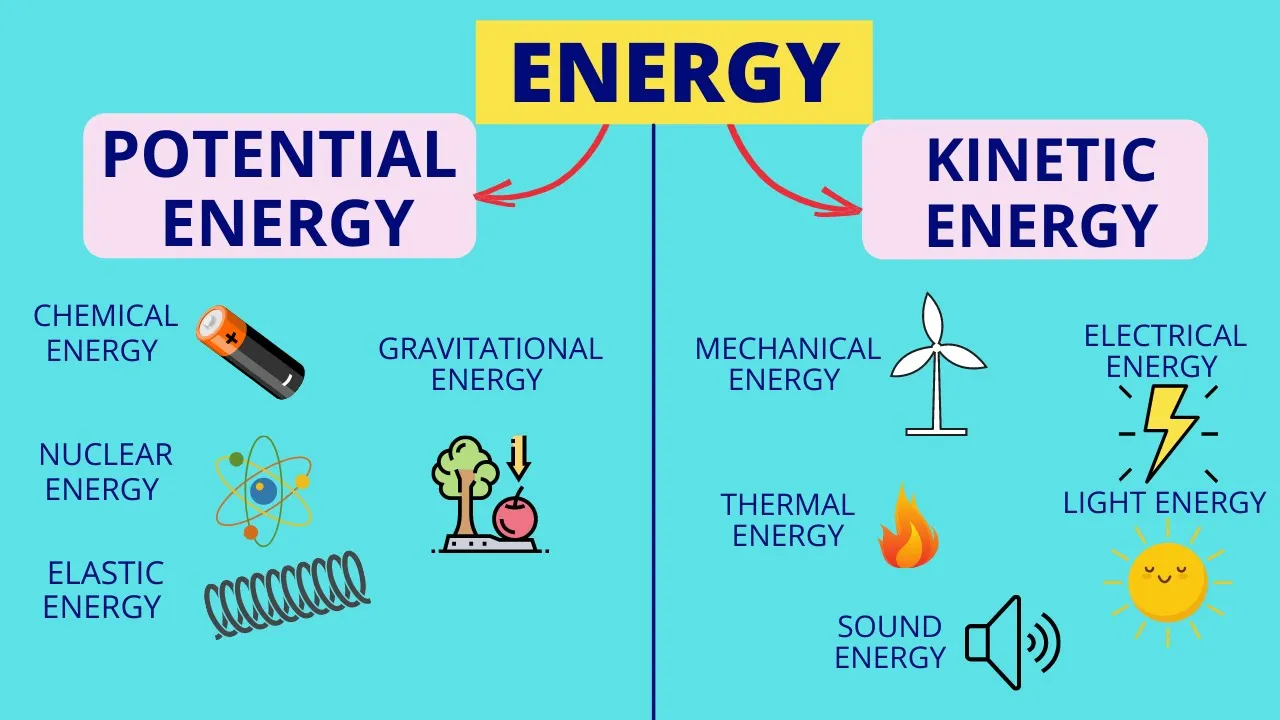 is converted to chemical energy through photosynthesis mechanical energy from a moving windmill is converted to electrical energy electrical energy is then converted to light energy so again energy is the ability to do work it is divided into two types potential energy and kinetic energy