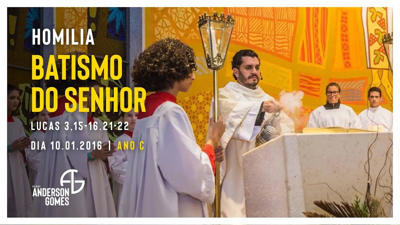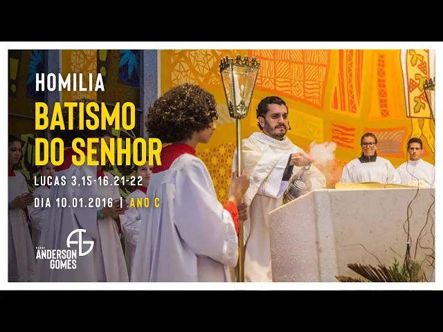 [Música] o senhor esteja convosco ele está no meio de nós proclamação do Evangelho de Jesus Cristo segundo Lucas glória a vós senhor naquele tempo o povo estava na expectativa e todos se perguntavam no seu íntimo se João não seria o Messias por isso João declarou a todos Eu vos batizo com água mas virá aquele que é mais forte do que eu eu não sou digno de desamarrar a correia de suas sandálias ele vos batizará no Espírito Santo e no fogo quando todo o povo estava sendo batizado Jesus também recebeu o batismo e enquanto rezava o