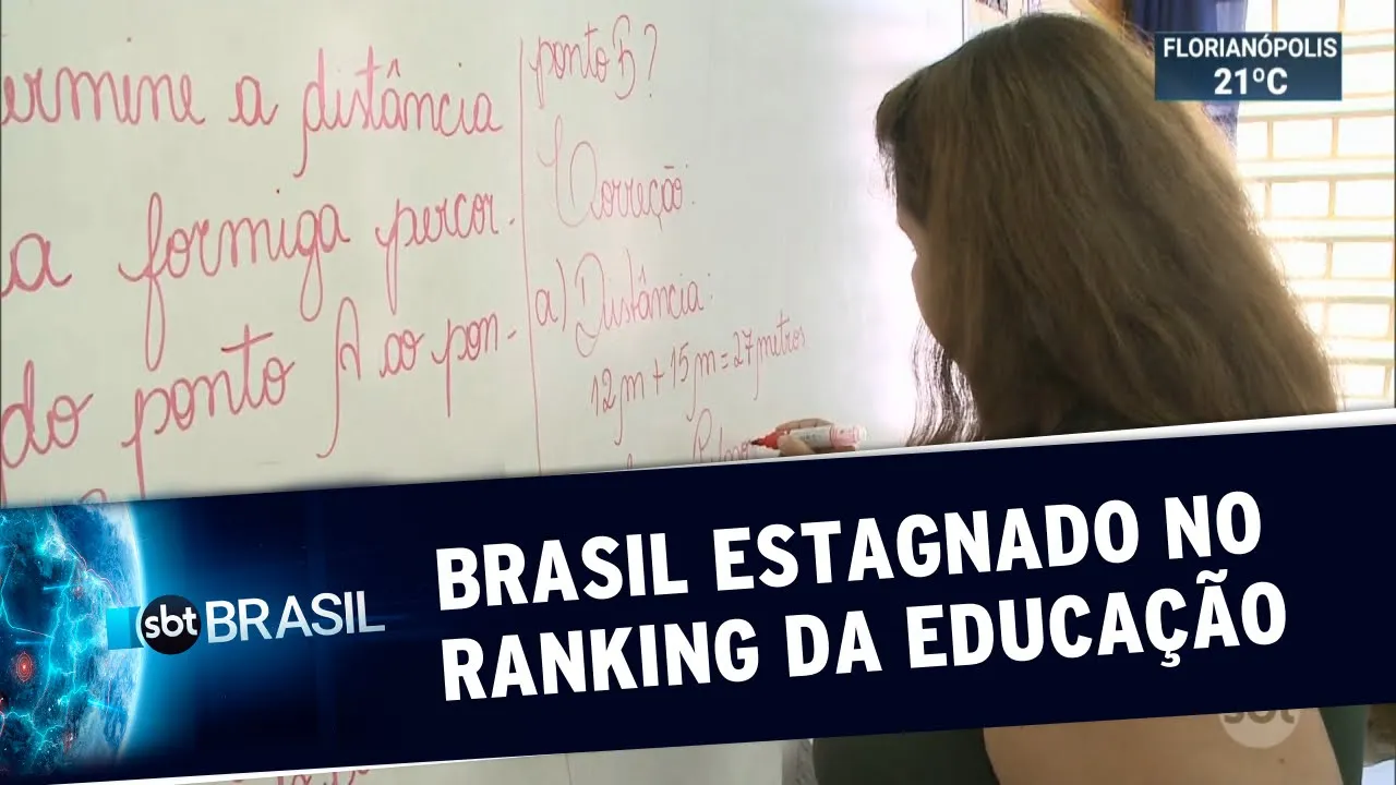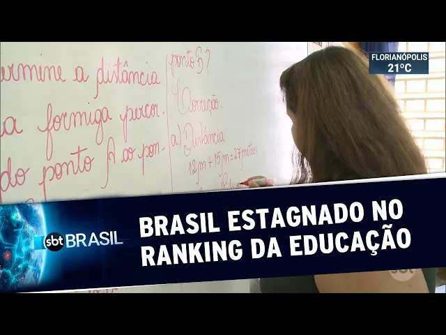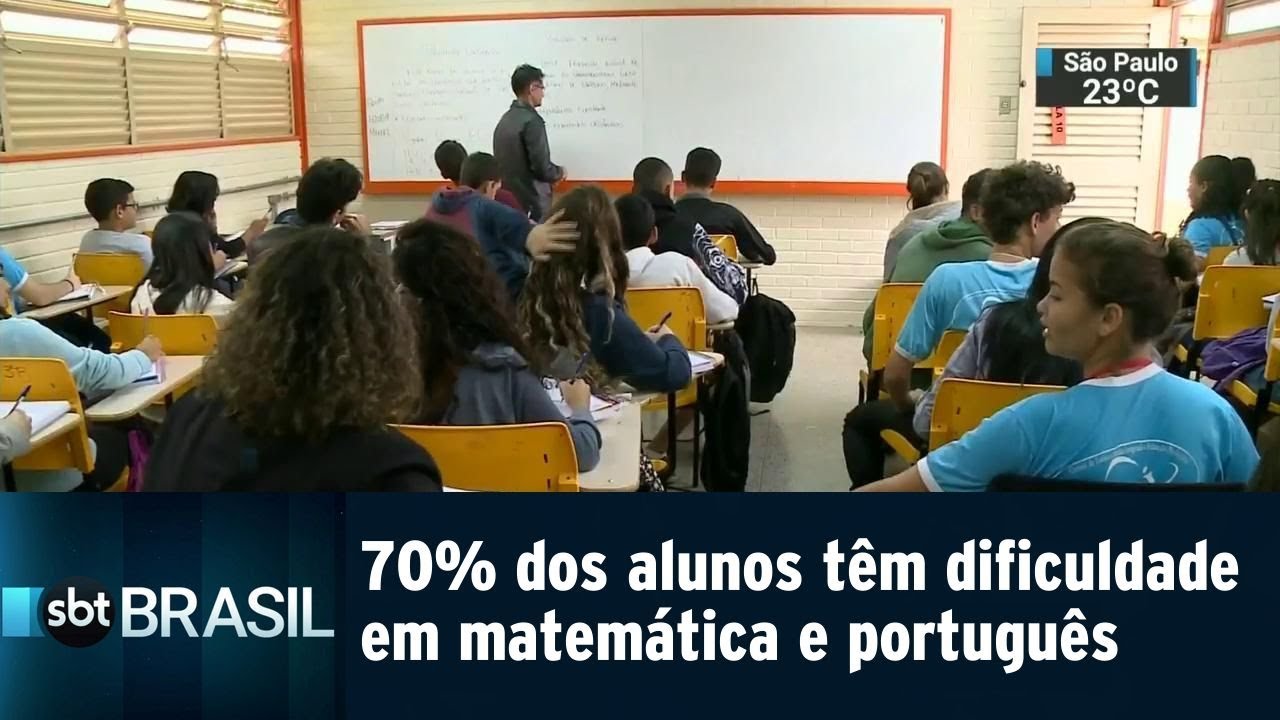 um leitura metade dos alunos não têm conhecimento mínimo em ciências o índice chega a 55% pior resultado foi em matemática a avaliação revelou que sete em cada dez estudantes brasileiros não têm um nível básico da disciplina são incapazes de resolver cálculos simples é o desempenho mais baixo entre os países da américa do sul estamos empatados estatisticamente com a argentina e atrás de colômbia peru chile e uruguai o ministro da educação prometeu mudar essa realidade a gente começa a mudar isso um livro didático com técnicas diferentes e começaremos a implementar isso no brasil inteiro via internet