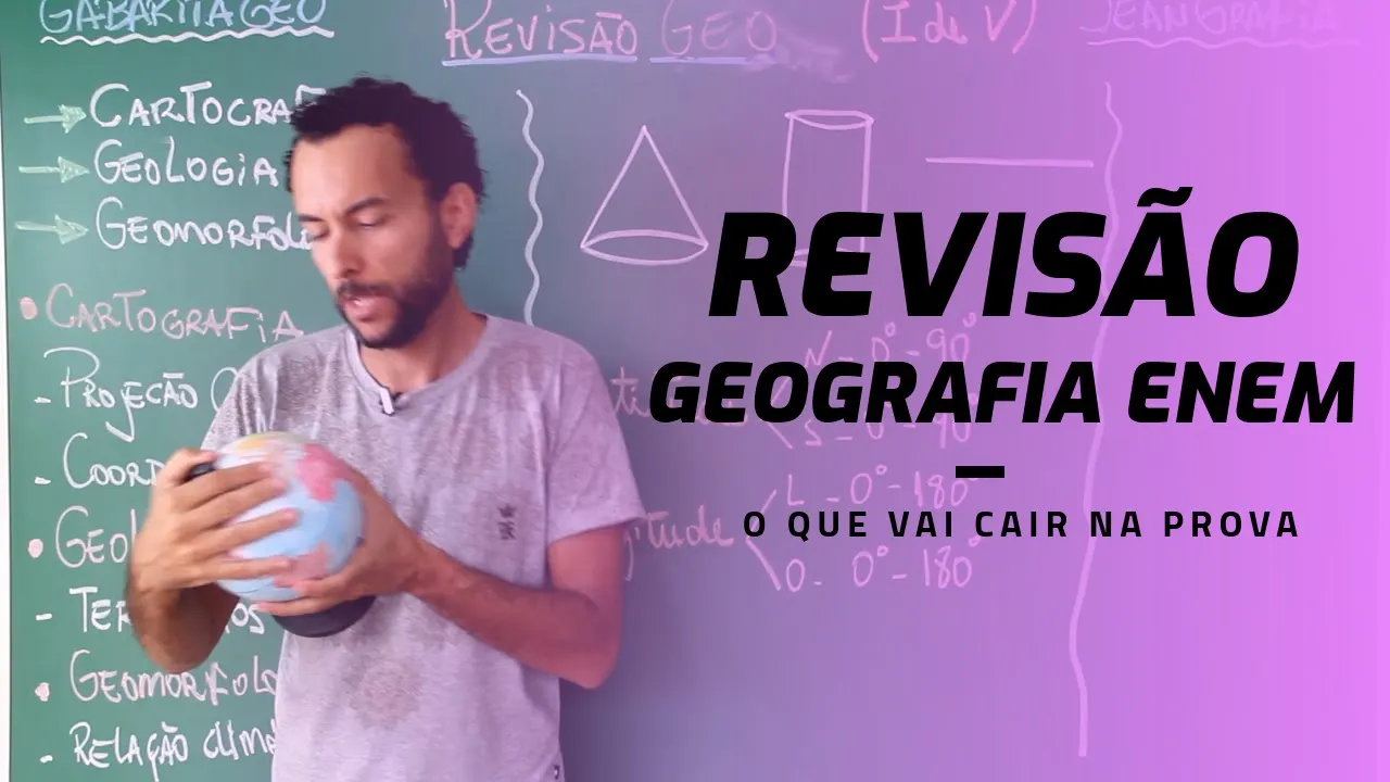 fala pessoal beleza professor jean azevedo aqui no gabarita gel no canal geografia para uma aula sensacional vamos começar a trabalhar revisão de geografia e os nossos primeiros temas é a cartografia a geologia ea geomorfologia vamos trabalhar todos os temas como vai ser essa as aulas jean eu vou pegar a cartografia vou trabalhar os principais temas a geologia os principais haja a morfologia os principais aquilo que pode aparecer a sua prova joguei os búzios e os búzios me disseram que esses podem aparecer é isso que eu vou trabalhar com você está o país uma aula show