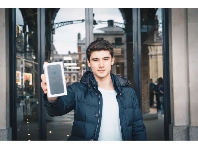 for one of you guys to uh you know to have so um yeah today is the start of the iPhone 7 giveaway but first before I can actually give something away I got to have it myself so let's go in there and buy this thing these guys would like to buy uh can I get iPhone 7 uh black like the math one have uh 32 gig just one phone yeah sweet do you need anything else with it that's it cool if you just wait here I'll go grab it for you you I'll be a couple