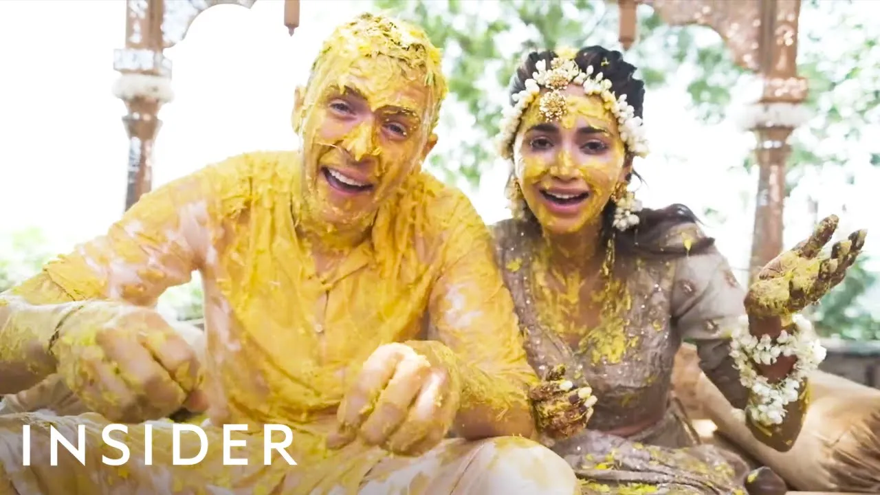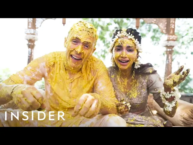In this pre-wedding ritual, turmeric paste is rubbed onto the couple's skin by friends and family. In India, turmeric can signify a lot of things, including purity, fertility, and good health. The paste also gives the couple a nice glow for their big day.
