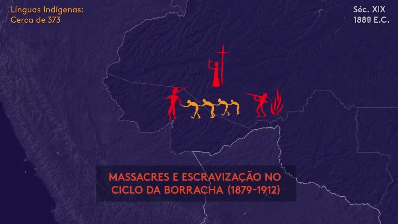 1864 a 1870 guerra aos cães 1864 a 1924 massacres e escravização no ciclo da borracha 1879 a 1912 ataques aoklen 1890 a 1925 [Música] massacre do cinta larga 1963 [Música] conflitos durante a construção das rodovias na Amazônia década de 1970 ataques 1974 a 1983 [Música] [Música] [Música] massacre dos Guarani Caiuá 1895 até hoje Invasão garimpeira na terra indígena munduruku e na terra e anumani 2010 até hoje luta contra o Marco temporal e o desmonte das políticas indigenistas de 2016 até hoje além do Cerco aos povos isolados não constatados até hoje antes da Grande invasão dos