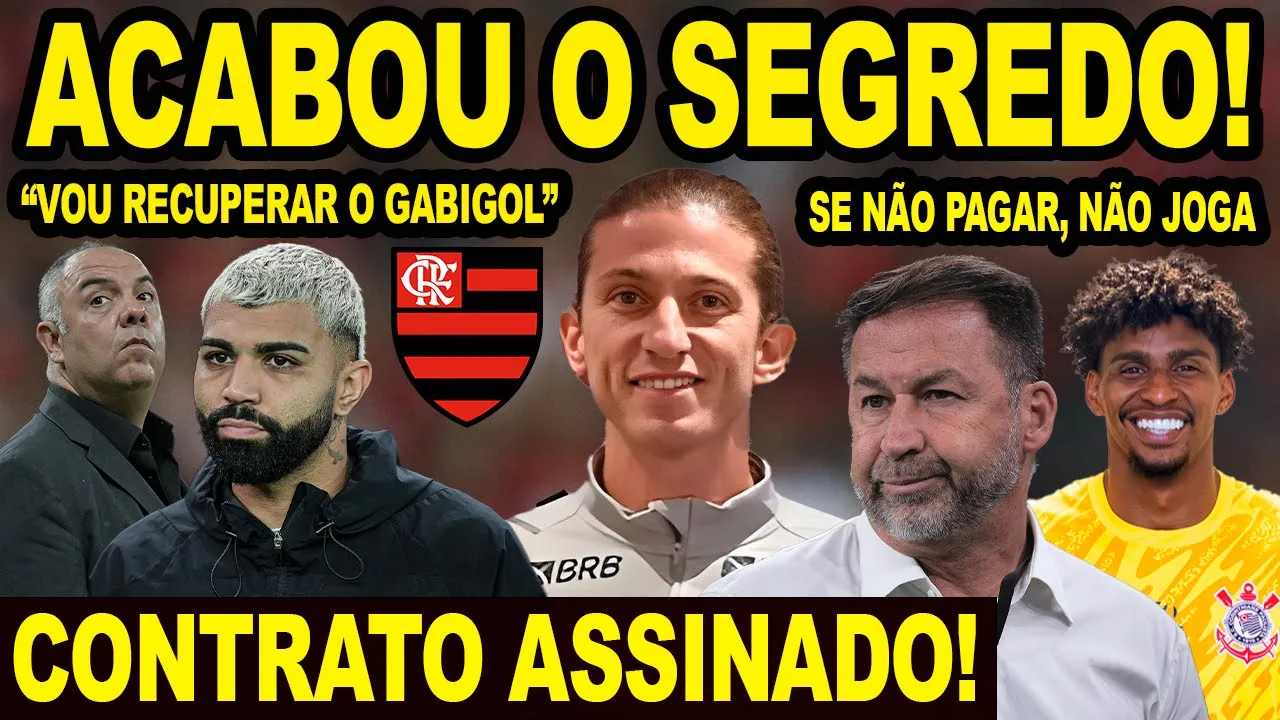 e acabou o segredo Flamengo tomou a decisão e assinou um novo contrato Marcos Braz rebate o Corinthians e garante o Hugo Souza só entra em campo se pagar a multa Felipe Luiz é apresentado e fala sobre recuperação de Gabriel Barbosa o gabigol fala meus amigos e minhas amigas beleza bem-vindos a mais um vídeo aqui em seu canal de notícias do Flamengo canal flazoeiro eu estou chegando com tudo na na tarde desta terça-feira aqui direto do ninho do rubu Felipe Luiz acabou de ser apresentado lá dentro ainda agora e eu chego é claro como sempre com