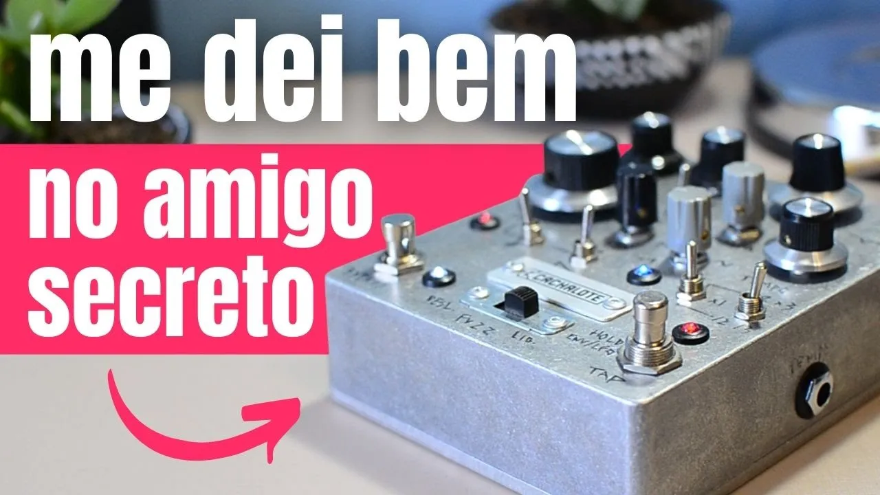 da eletronix acreditem Se quiserem somos 22 participantes dentre guitarristas e fabricantes e por isso a gente fez o amigo secreto de pedais ou seja todo mundo ganhou um pedal e deu um pedal de presente eu vou deixar o link desse Episódio fixado no topo da seção de comentários pra que vocês vejam quem saiu com quem e do meio dessa galera toda e aliás foi para mim uma baita honra está ali junto a esse pessoal todo né porque time o meu presente veio de um dos meus fabricantes de pedais favoritos não faz o Brasil favoritos em