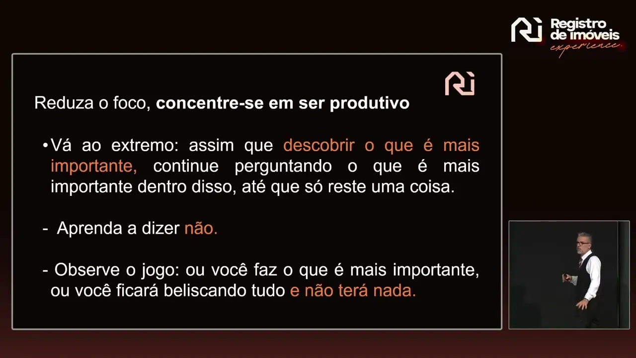 produtivo eu prefiro de manhã acordo cedo e a preferência maioria é essa acorda está com toda a energia tomou seu café tá pronto tá bastante energizado agora qual é a tua lista de isso aqui é importante é isso que eu vou fazer você vai ter muito mais produtividade do que se você for fazer o que é importante no final do dia ah minha força de vontade tá baixa no final do dia mas eu tenho que fazer aquela aquele requerimento pro registrador responder aquela nota devolutiva faça de manhã ela você vai ver que a produção é