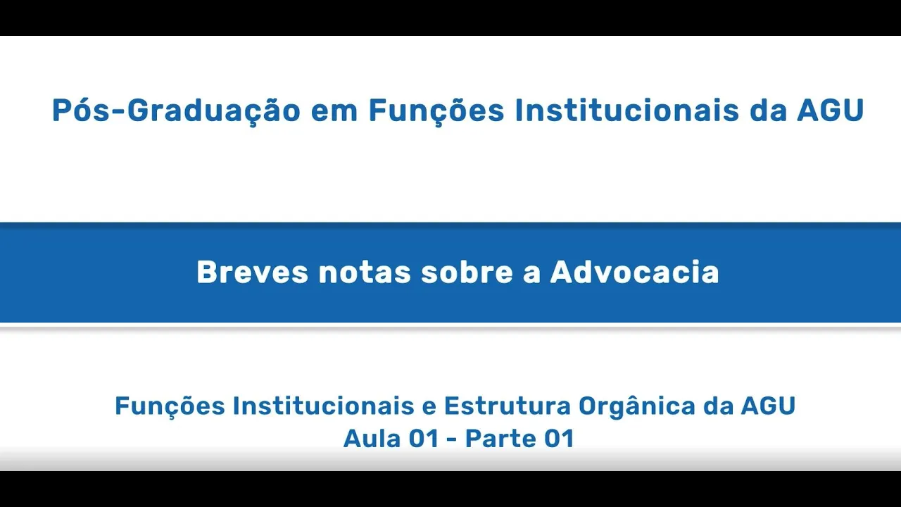 recursos nos processos de interesse da União Federal e como relembrar um objetivo dessa pós-graduação é de proporcionar a aperfeiçoamento prático e teórico não só aos membros das carreiras jurídicas da aggeo mas também aos servidores aos empregados públicos e aos Estagiários que atuam na nossa instituição é então considerando a nós público bastante heterogêneo eu estou sugerindo a divisão dessa primeira parte da disciplina também três partes na primeira parte mais faremos um breve histórico da advocacia o que eu chamo aqui de breves Notas Sobre advocacia o próximo da parte nós falaríamos sobre o copo histórico a respeito