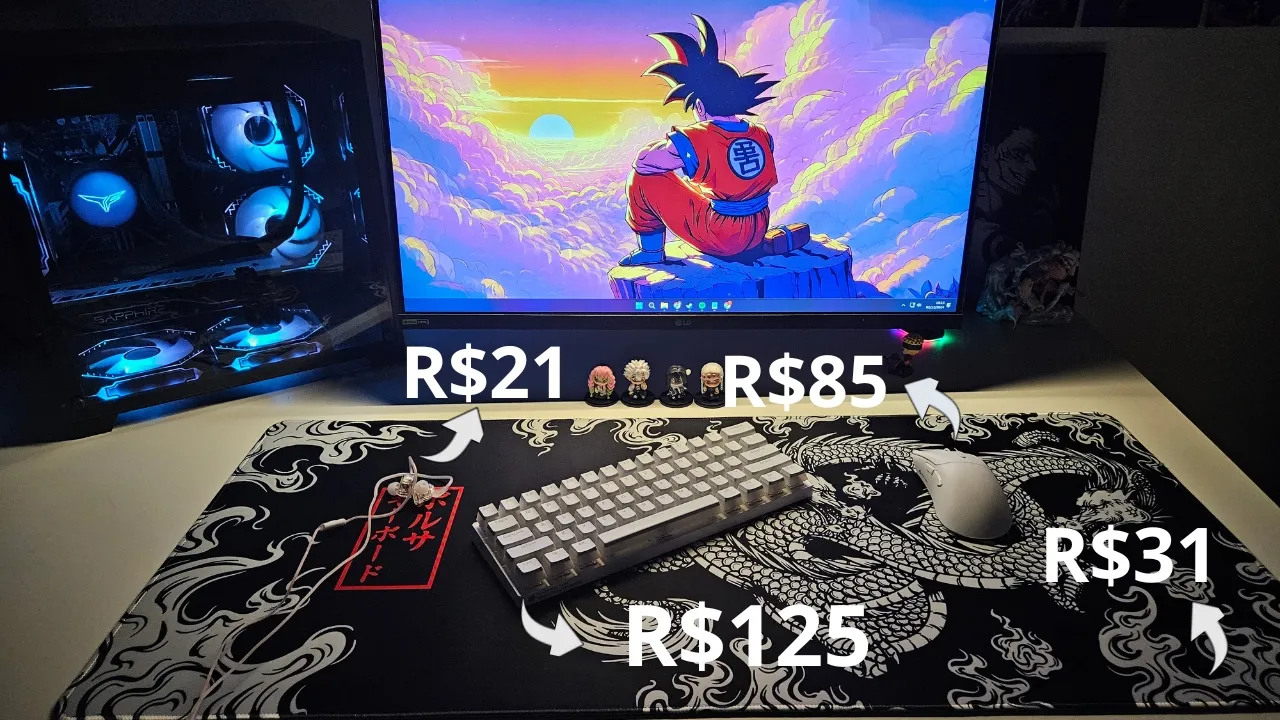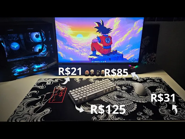 salve galera tudo bom com vocês eu espero que sim hoje o meu objetivo é montar com vocês um setup econômico de periférico e já de cara eu vou falar para vocês que eu gastei R 260 para montar um setup com mouse teclado mouse pad e fone de ouvido então não deixa de ficar até o final para ver como que eu fiz esse milagre e vamos trazer o nosso primeiro item que é o mousepad para quem não conhece esse é o famoso mousepad do dragão chinês na Aliexpress ele é um dos mousepads que tem um custo