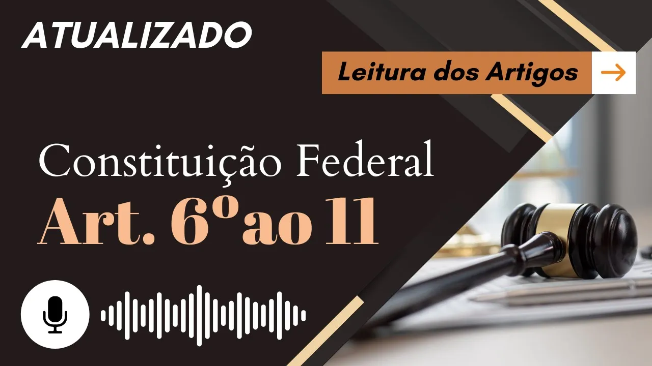 você está no áudio da Constituição Federal e hoje será lido do artigo 6º até o artigo 11 que são os artigos que trazem os direitos sociais e caem bastante em Provas e Concursos eu sou Cíntia Brunelli e eu estou trazendo uma série de narrações dos principais artigos da Constituição Federal a proposta é a de fazer uma leitura humanizada e não robotizada porque assim é possível potencializar aumentar a sua memorização O que significa que você vai aprender muito mais rápido e eu Convido você a se inscrever no canal Porque toda semana tem saído conteúdo importante por
