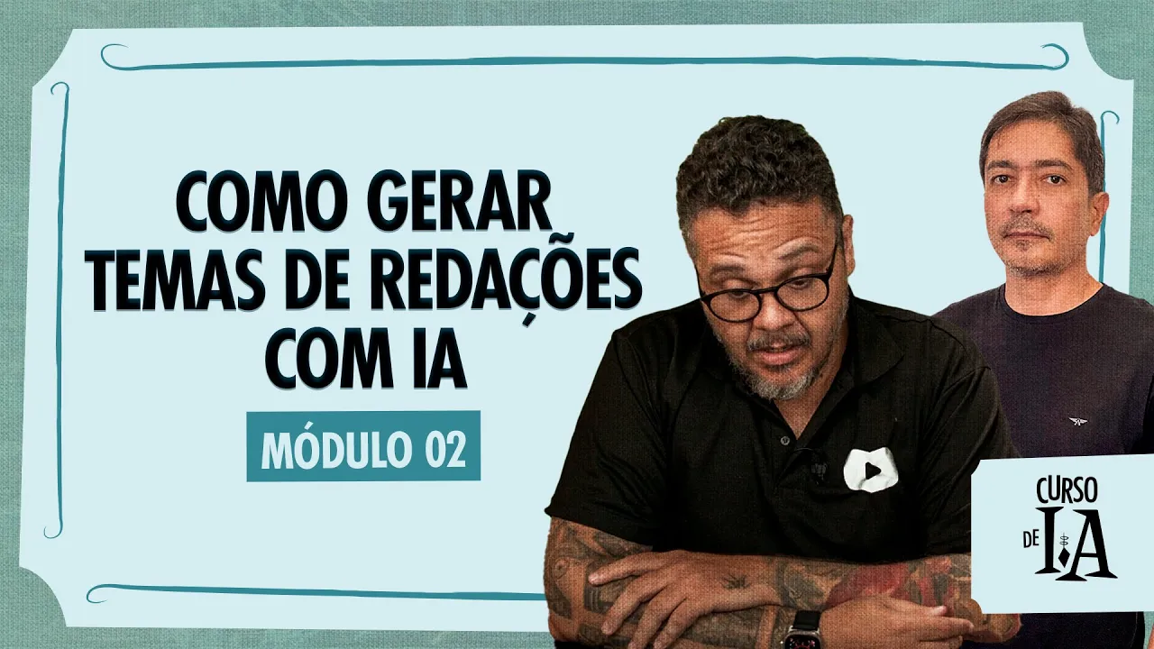 Aí você pega lá duas ou três sugestões ou pega todas elas e escreve uma redação sobre cada uma delas. E aí você pega essas redações, uma a uma, é claro, e coloca o outro prompt que a gente viu nas aulas anteriores para te corrigir e te dar sugestões. Porque o nosso prompt não só corrige e dá uma nota, não.