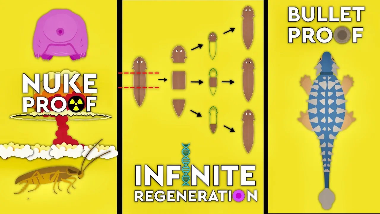 Ones that have been squished and chopped up, but in true Terminator style even generate back to life Surely that is what indestructible is really about And incredibly there are a lot of animals out there with regenerative Powers from salamanders regrowing their tails to sea cucumbers regrowing their organs Okay, let's start with probably the cutest of the candidates so far the axolotl This little fella can regrow one of the most important organs of all not only can they regenerate a missing limb? Tail or even their lower jaw, but also parts of their brain and heart If they're paralyzed in the back They can make all new neurons and new connections that allow them to use their legs again Which is really one of the most incredible examples of recovery But as incredible as that is there's still only regenerating parts of the body now I'm sure I'm not the only one who heard the rumor of school about earthworms You know the theory if you chop one in two, it will generate into two living earthworms True the head end may survive and regrow a stunted tail But once the nerve endings have stopped it wriggling around you'll most likely just end up with two halves There is however distant relatives known as planarian flatworms and Scientists are describing these incredible creatures as having regenerative superpowers Research has looked at a range of these species since 1901 But it's only today that scientists are beginning to understand is true abilities This creature can regrow its entire head but not only that it retains learned Information as though it had never been decapitated and it doesn't stop there this incredible little worm can regenerate from as little as 10,000 cells which is around only one 279th of a planarian flatworms body. How do they do it?