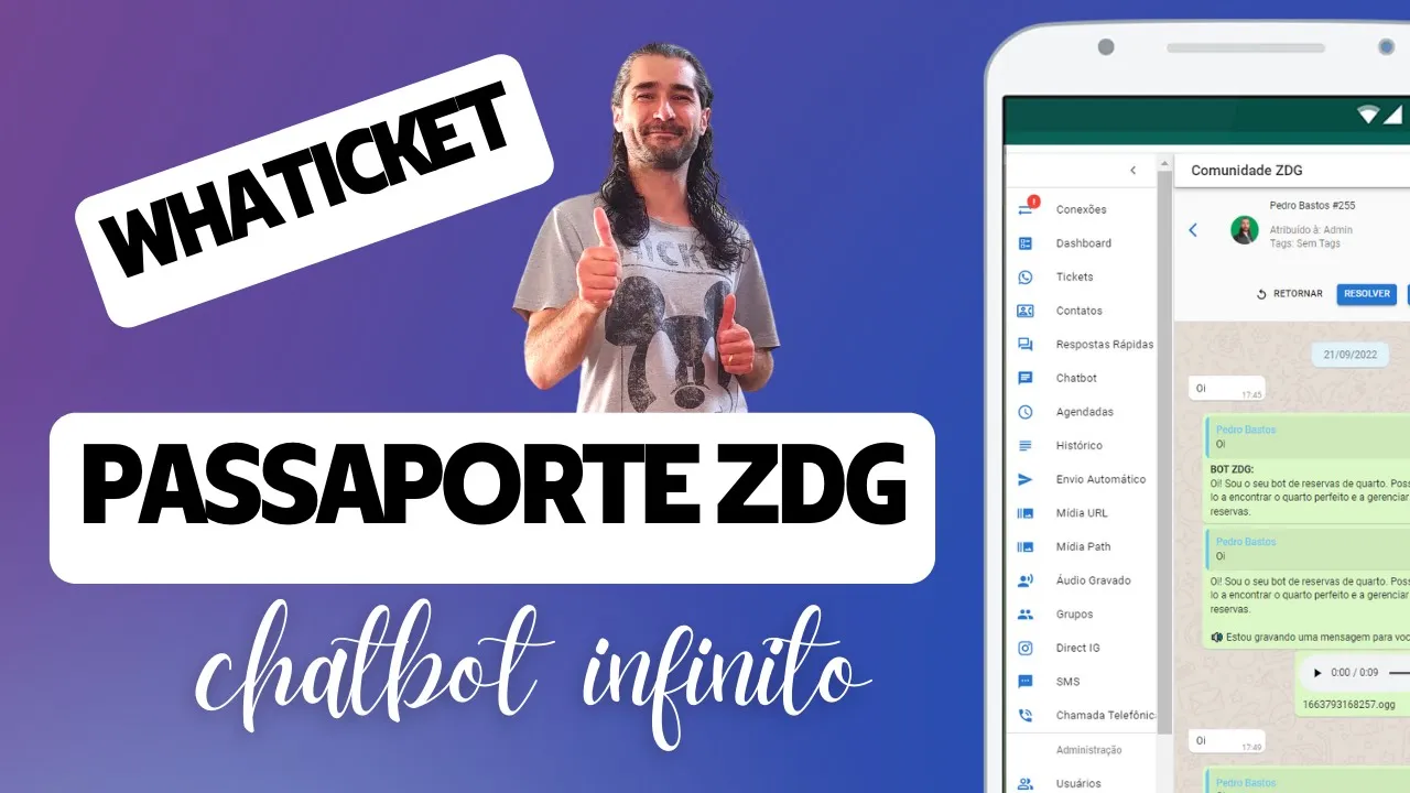 E aí [Música] e Fala galera beleza Pedrinho da Nasa aqui especialista em WhatsApp marketing e através desse vídeo curto e rápido eu gostaria de anunciar o lançamento do novo curso do Zap e das galáxias o passaporte cdg onde a gente vai estar abordando técnicas avançadas aí de construção de chatbots e a primeira aula que eu vou liberar no passaporte cdg é a integração de um chatbot infinito dentro do da interface do A Ticket Então dentro desse curso vocês vão aprender como criar esse painel aqui que é um crédito tá bem um sistema que você pode